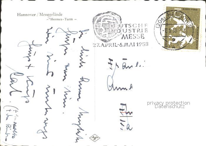 72148617 alte Postkarte HANNOVER CITY Fliegeraufnahme Messegelaende Hermes Turm postalisch gelaufen Erhaltung siehe scans KatCode: 11110003241001