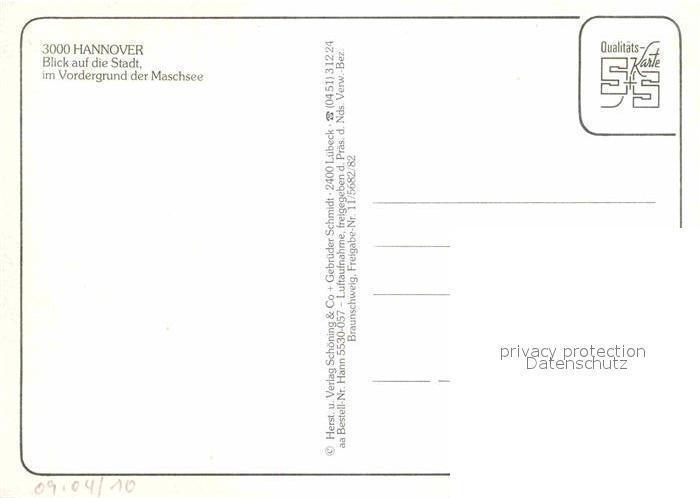 72887451 HANNOVER CITY Fliegeraufnahme mit Maschsee postalisch nicht gelaufen Erhaltung siehe scans [WerneD78] KatCode: 11110003241001