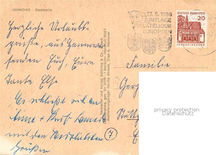 72989766 alte Postkarte HANNOVER CITY Fliegeraufnahme mit Stadthalle postalisch gelaufen Erhaltung siehe scans [WerneD78] KatCode: 11110003241001