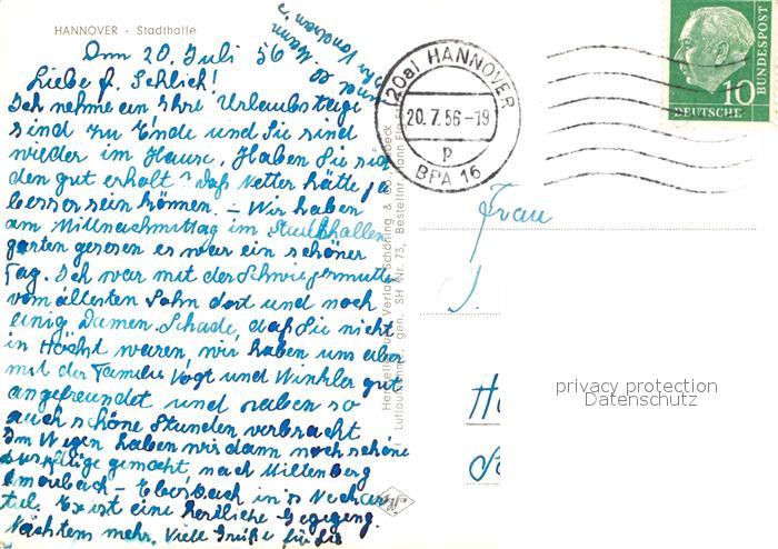 73013876 alte Postkarte HANNOVER CITY Fliegeraufnahme Stadthalle postalisch gelaufen Erhaltung siehe scans [KathaD81] KatCode: 11110003241001