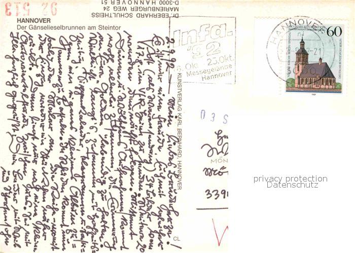 72851727 alte Postkarte HANNOVER CITY Gaenselieselbrunnen Steintor postalisch gelaufen Erhaltung siehe scans [AndreD76] KatCode: 11110003241001