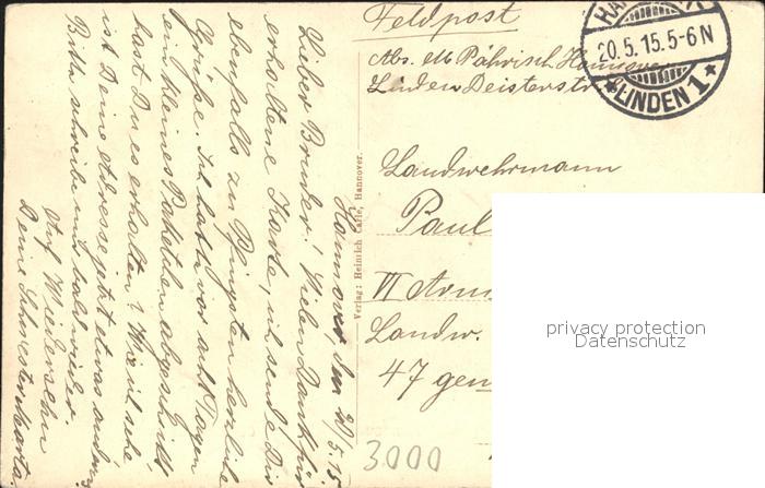 42184255 alte Postkarte HANNOVER CITY Garnison Lazarett Eisernes Kreuz postalisch gelaufen Feldpost Erhaltung siehe scans KatCode: 11110003241001
