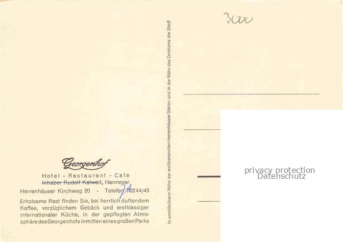 HANNOVER CITY Georgenhof Hotel Restaurant postalisch nicht gelaufen Erhaltung siehe scans [WerneD78] Wern Katcode 11110003241001