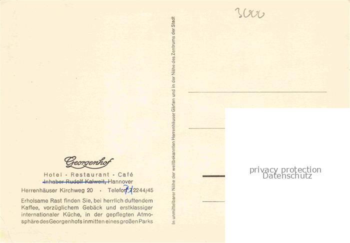 HANNOVER CITY Georgenhof Hotel Restaurant postalisch nicht gelaufen Erhaltung siehe scans [WerneD78] Wern Katcode 11110003241001