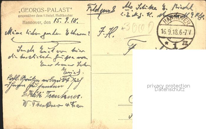42183464 alte Postkarte HANNOVER CITY Georgs Palast Restaurant postalisch gelaufen Feldpost Erhaltung siehe scans KatCode: 11110003241001
