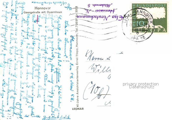 72893352 alte Postkarte HANNOVER CITY Georgstrasse Opernhaus postalisch gelaufen Erhaltung siehe scans [PaolaD17] KatCode: 11110003241001
