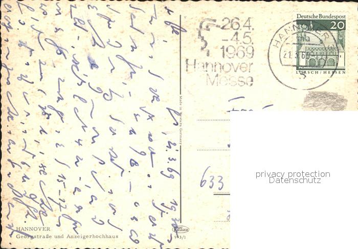 72597249 alte Postkarte HANNOVER CITY Georgstrasse und Anzeigerhochhaus postalisch gelaufen Erhaltung siehe scans [FriedD77] KatCode: 11110003241001