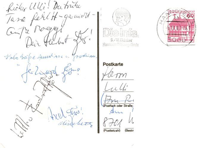 73896188 HANNOVER CITY Hannovertreffen 1987 postalisch gelaufen Erhaltung siehe scans [WerneD78] alte Postkarte Wern Katcode 11110003241001