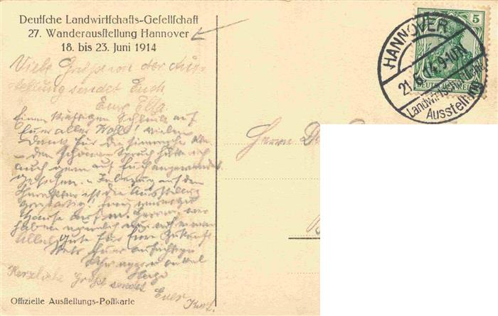 73972179 alte Postkarte HANNOVER CITY Haupteingang der Landwirtschaftlichen Ausstellung Offzielle Ausstellungs-Postkarte 27. Wanderausstellung Hannover Juni 1914 postalisch gelaufen Erhaltung siehe scans [FriedD77] KatCode: 11110003241001