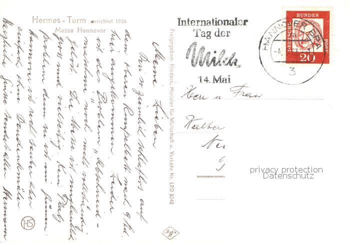 73835596 HANNOVER CITY Hermes Turm Messe Hannover Fliegeraufnahme postalisch gelaufen Erhaltung siehe scans [WerneD78] alte Postkarte Wern Katcode 11110003241001