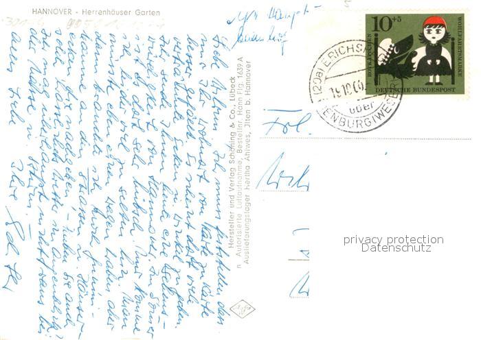73668560 HANNOVER CITY Herrenhaeuser Garten Fliegeraufnahme postalisch gelaufen Erhaltung siehe scans [WerneD78] alte Postkarte Wern Katcode 11110003241001