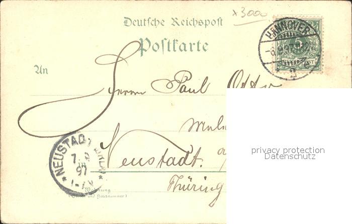 42163987 alte Postkarte HANNOVER CITY Herrenhauser Allee Ernst August Denkmal Bahnhof Leineufer mit Beguinenthurm postalisch gelaufen Erhaltung siehe scans KatCode: 11110003241001