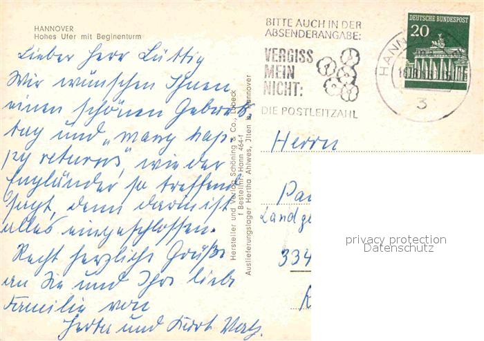 72863412 alte Postkarte HANNOVER CITY Hohes Ufer mit Beginenturm postalisch gelaufen Erhaltung siehe scans [LiesaD40] KatCode: 11110003241001