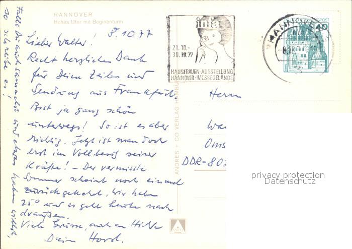 72375275 alte Postkarte HANNOVER CITY Hohes Ufer mit Beginenturm postalisch gelaufen Erhaltung siehe scans KatCode: 11110003241001