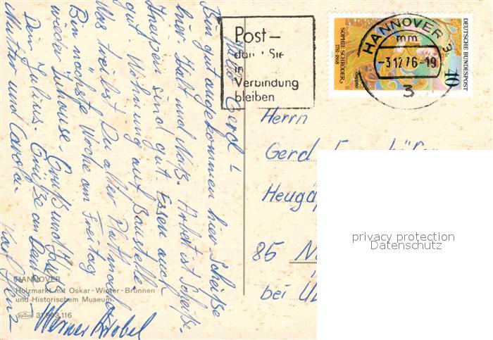 72890084 alte Postkarte HANNOVER CITY Holzmarkt mit Oskar Winter Brunnen postalisch gelaufen Erhaltung siehe scans [WerneD78] KatCode: 11110003241001