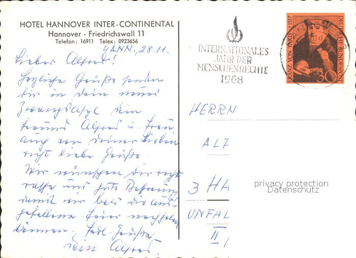 72108135 alte Postkarte HANNOVER CITY Hotel Hannover Intercontinental postalisch gelaufen Erhaltung siehe scans KatCode: 11110003241001