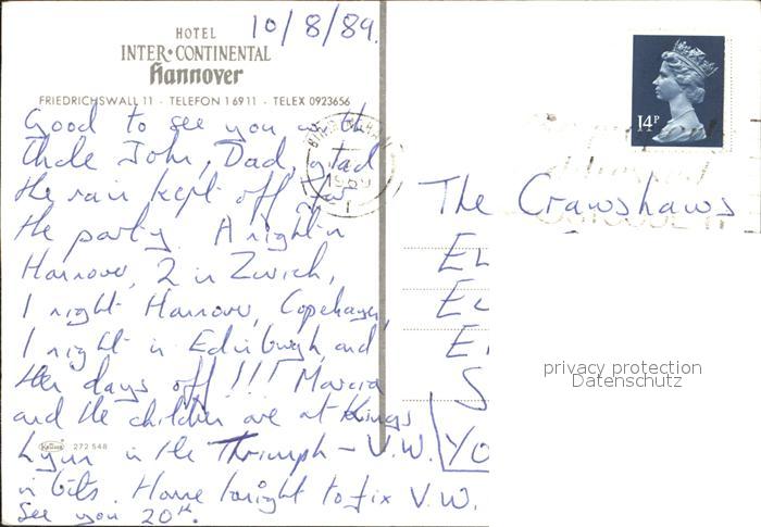 72280585 alte Postkarte HANNOVER CITY Hotel Intercontinental postalisch gelaufen Erhaltung siehe scans KatCode: 11110003241001