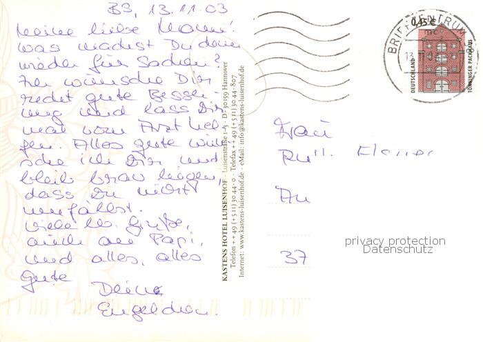 73789077 HANNOVER CITY Kastens Hotel Luisenhof Rezeption Zimmer Buffet postalisch gelaufen Erhaltung siehe scans [WerneD78] alte Postkarte Wern Katcode 11110003241001