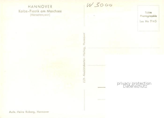 72986253 HANNOVER CITY Kolbe Plastik am Maschsee Menschenpaar postalisch nicht gelaufen Erhaltung siehe scans [FriedD77] KatCode: 11110003241001