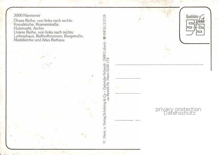 72616672 HANNOVER CITY Kreuzkirche Kramerstr Holzmarkt Archiv Leibnizhaus Ballhofbrunnen Burgstr Marktkirche Altes Rathaus postalisch nicht gelaufen Erhaltung siehe scans [WerneD78] KatCode: 11110003241001