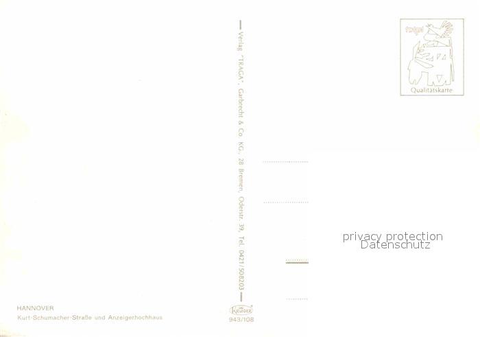 72777965 HANNOVER CITY Kurt Schumacher Strasse Anzeigerhochhaus postalisch nicht gelaufen Erhaltung siehe scans [KathaD81] KatCode: 11110003241001