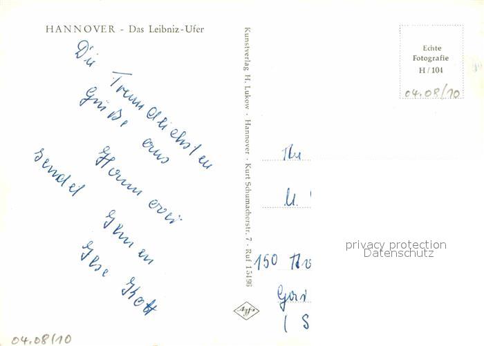 72915501 HANNOVER CITY Leibniz Ufer Duve Brunnen Schloss Gaststaetten Beginenturm Ballhof Wasserkunst Am Hohen Ufer Leineschloss postalisch nicht gelaufen Erhaltung siehe scans [WerneD78] KatCode: 11110003241001