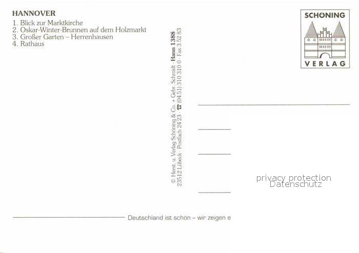 72918455 HANNOVER CITY Marktkirche Oskar Winter Brunnen Holzmarkt Grosser Garten Schloss Herrenhausen Rathaus Geschichte Wappen postalisch nicht gelaufen Erhaltung siehe scans [FriedD77] KatCode: 11110003241001