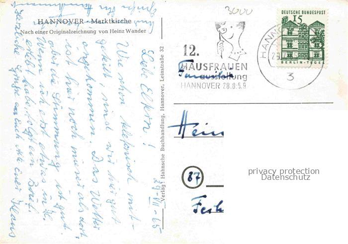 HANNOVER CITY Marktkirche Zeichnung postalisch gelaufen Erhaltung siehe scans [WerneD78] alte Postkarte Wern Katcode 11110003241001