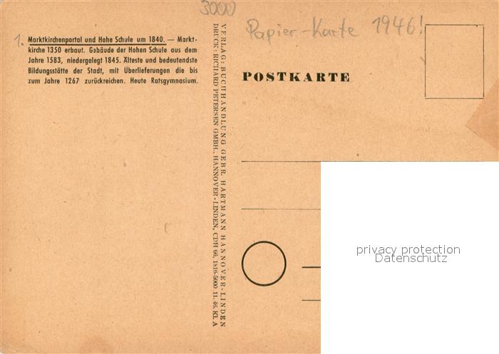 73691002 HANNOVER CITY Marktkirchenportal und Hohe Schule um 1840 postalisch nicht gelaufen Erhaltung siehe scans [WerneD78] Wern Katcode 11110003241001