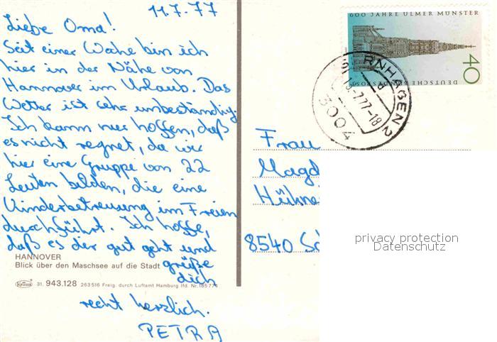 72777961 alte Postkarte HANNOVER CITY Maschsee postalisch gelaufen Erhaltung siehe scans [KathaD81] KatCode: 11110003241001