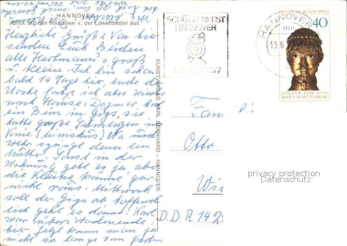 72361411 alte Postkarte HANNOVER CITY Maschsee postalisch gelaufen Erhaltung siehe scans KatCode: 11110003241001
