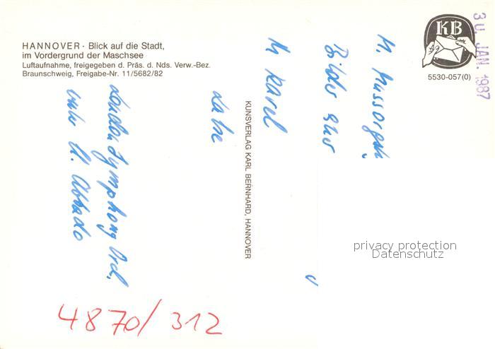 73088417 HANNOVER CITY Maschsee Fliegeraufnahme postalisch nicht gelaufen Erhaltung siehe scans [NatalD47] KatCode: 11110003241001