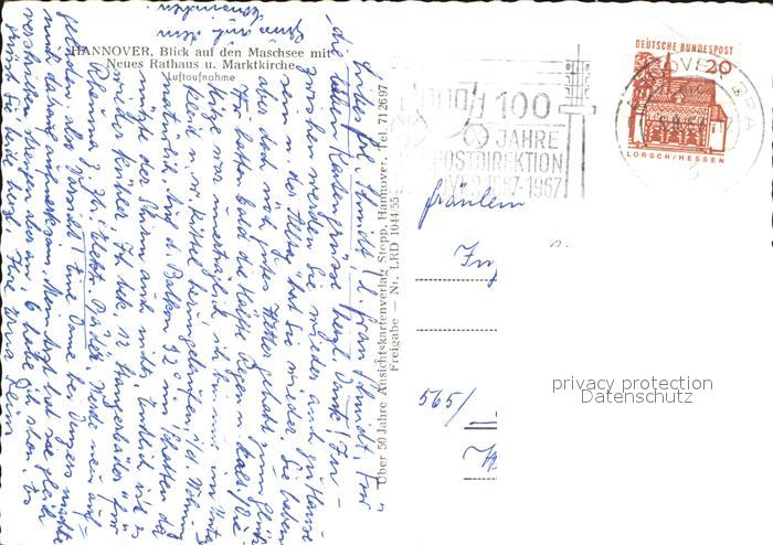 72513870 alte Postkarte HANNOVER CITY Maschsee Neues Rathaus Marktkirche Fliegeraufnahme postalisch gelaufen Erhaltung siehe scans KatCode: 11110003241001