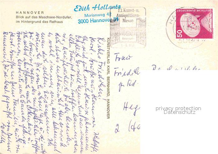72845049 alte Postkarte HANNOVER CITY Maschsee Nordufer im Hintergrund Rathaus postalisch gelaufen Erhaltung siehe scans [FriedD77] KatCode: 11110003241001