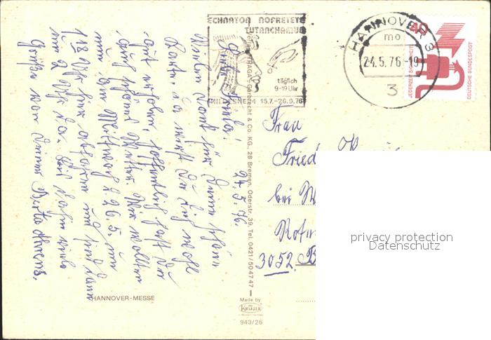 71952617 alte Postkarte HANNOVER CITY Messe postalisch gelaufen Erhaltung siehe scans KatCode: 11110003241001