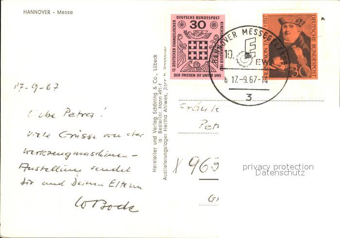 72454464 alte Postkarte HANNOVER CITY Messe postalisch gelaufen Erhaltung siehe scans KatCode: 11110003241001