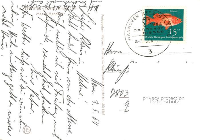 73829810 HANNOVER CITY Messe Hannover Hermes Turm Fliegeraufnahme postalisch gelaufen Erhaltung siehe scans [WerneD78] alte Postkarte Wern Katcode 11110003241001