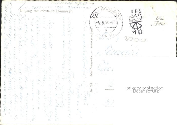 72229720 alte Postkarte HANNOVER CITY Messeeingang postalisch gelaufen Erhaltung siehe scans KatCode: 11110003241001