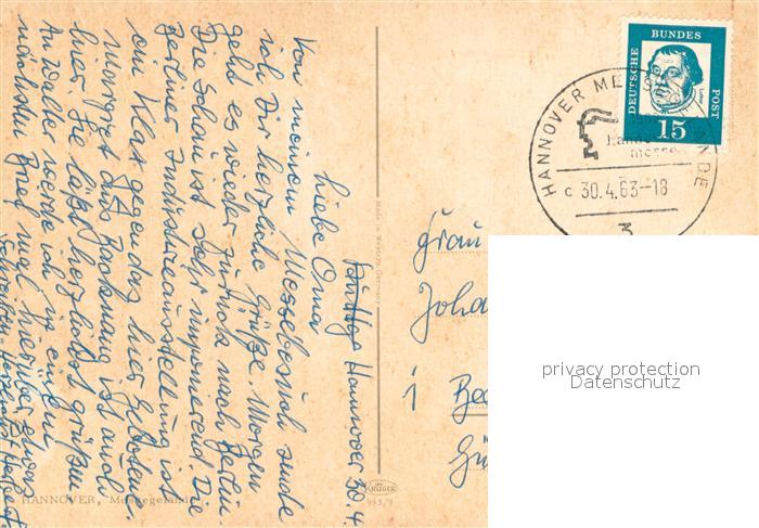 73681903 HANNOVER CITY Messegelaende postalisch gelaufen Erhaltung siehe scans [WerneD78] alte Postkarte Wern Katcode 11110003241001