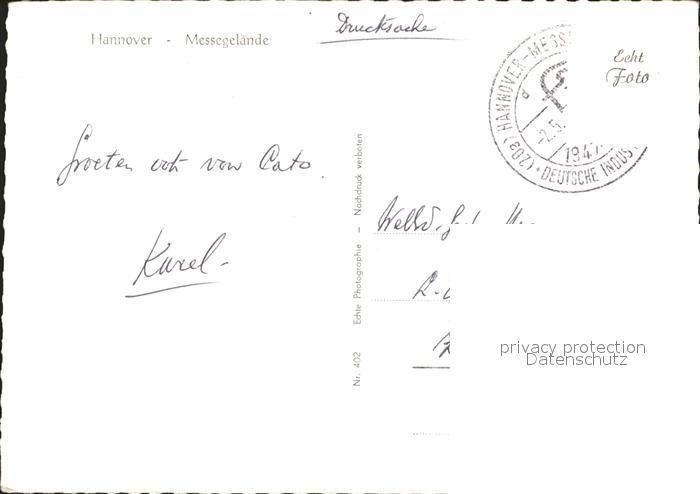 71939353 alte Postkarte HANNOVER CITY Messegelaende postalisch gelaufen Erhaltung siehe scans KatCode: 11110003241001