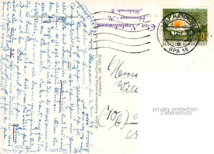 72916444 alte Postkarte HANNOVER CITY Neues Rathaus Fliegeraufnahme postalisch gelaufen Erhaltung siehe scans [WerneD78] KatCode: 11110003241001