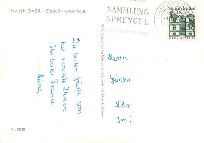73892818 HANNOVER CITY Oststadtkrankenhaus postalisch gelaufen Erhaltung siehe scans [FriedD77] alte Postkarte Frie Katcode 11110003241001
