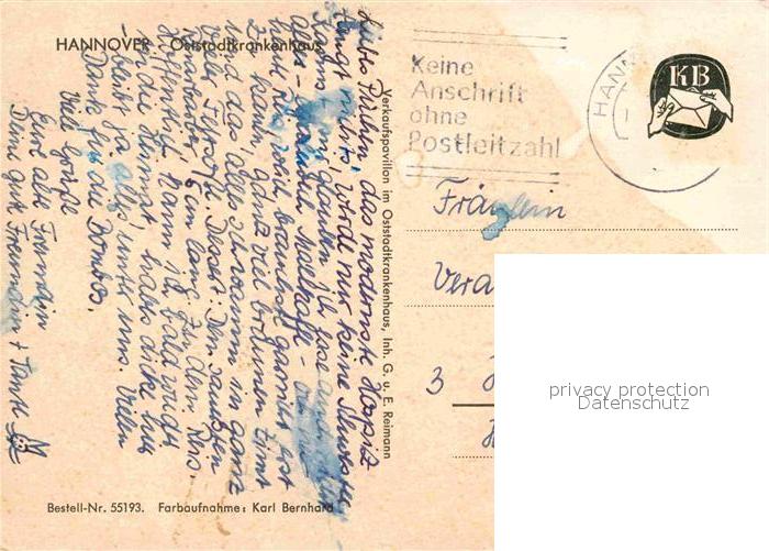 72854619 alte Postkarte HANNOVER CITY Oststadtkrankenhaus postalisch gelaufen Erhaltung siehe scans [LiesaD40] KatCode: 11110003241001