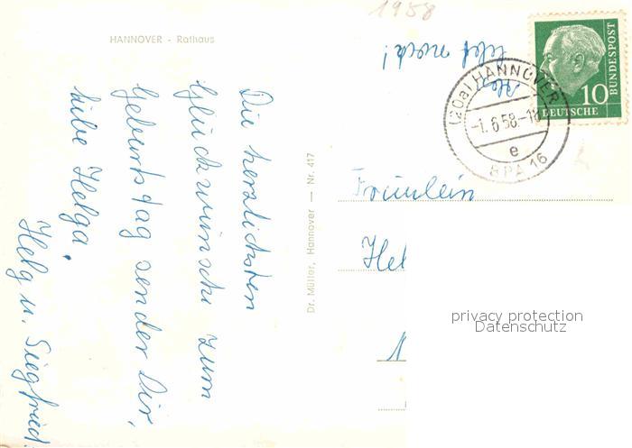 72909231 alte Postkarte HANNOVER CITY Rathaus postalisch gelaufen Erhaltung siehe scans [NatalD47] KatCode: 11110003241001
