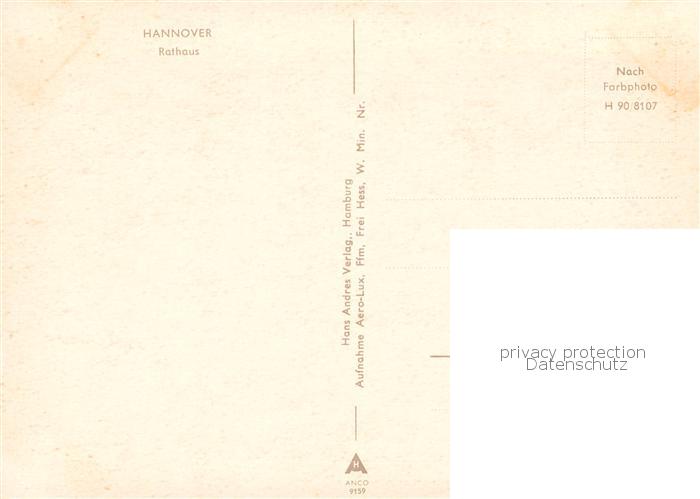 73837032 HANNOVER CITY Rathaus postalisch nicht gelaufen Fliegeraufnahme Erhaltung siehe scans [FriedD77] Fliegeraufnahme Frie Katcode 11110003241001
