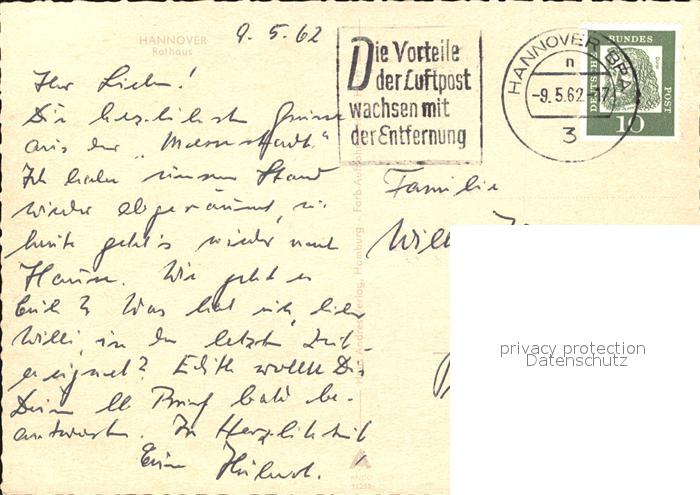 72438043 alte Postkarte HANNOVER CITY Rathaus postalisch gelaufen Erhaltung siehe scans KatCode: 11110003241001