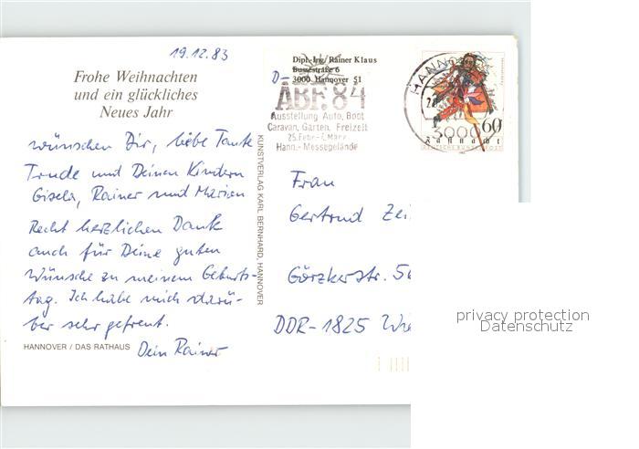 72078763 alte Postkarte HANNOVER CITY Rathaus postalisch gelaufen Erhaltung siehe scans KatCode: 11110003241001