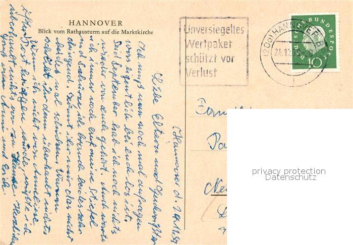 72939233 alte Postkarte HANNOVER CITY Rathausturm Marktkirche postalisch gelaufen Erhaltung siehe scans [PaolaD17] KatCode: 11110003241001