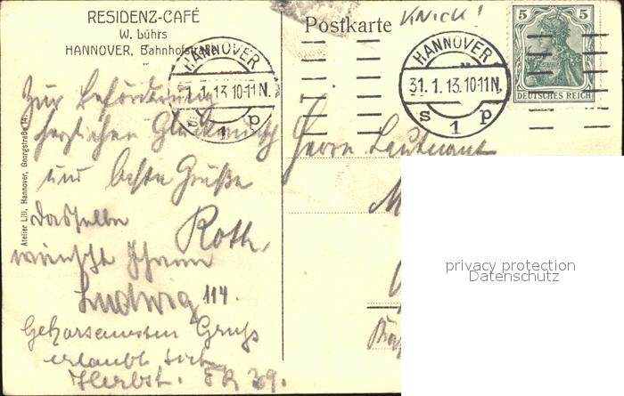 42583547 alte Postkarte HANNOVER CITY Residenz Cafe Gastraum postalisch gelaufen Erhaltung siehe scans [WerneD78] KatCode: 11110003241001
