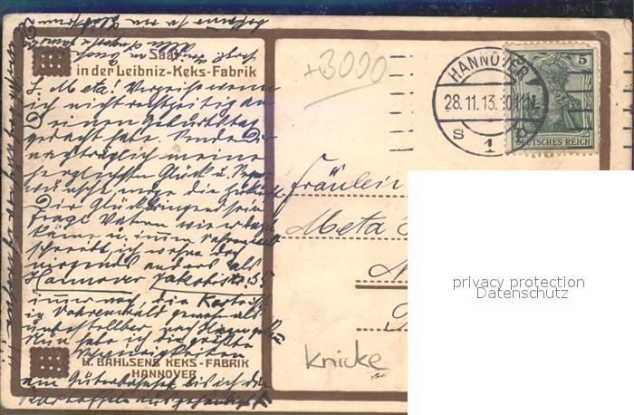 42167939 alte Postkarte HANNOVER CITY Saal Leibniz- Keks- Fabrik postalisch gelaufen Erhaltung siehe scans KatCode: 11110003241001